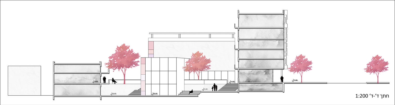 In this project I chose a plot opposite the spring square in Nazareth. This location, in front of a significant and historic square in the city, raised a fundamental question about the role of this project, and how the structure will contribute to the city and the square. In my opinion, the existing square has great potential, but does not function optimally today. Therefore, I decided that the role of my building is to give the square a wall and enclose it.